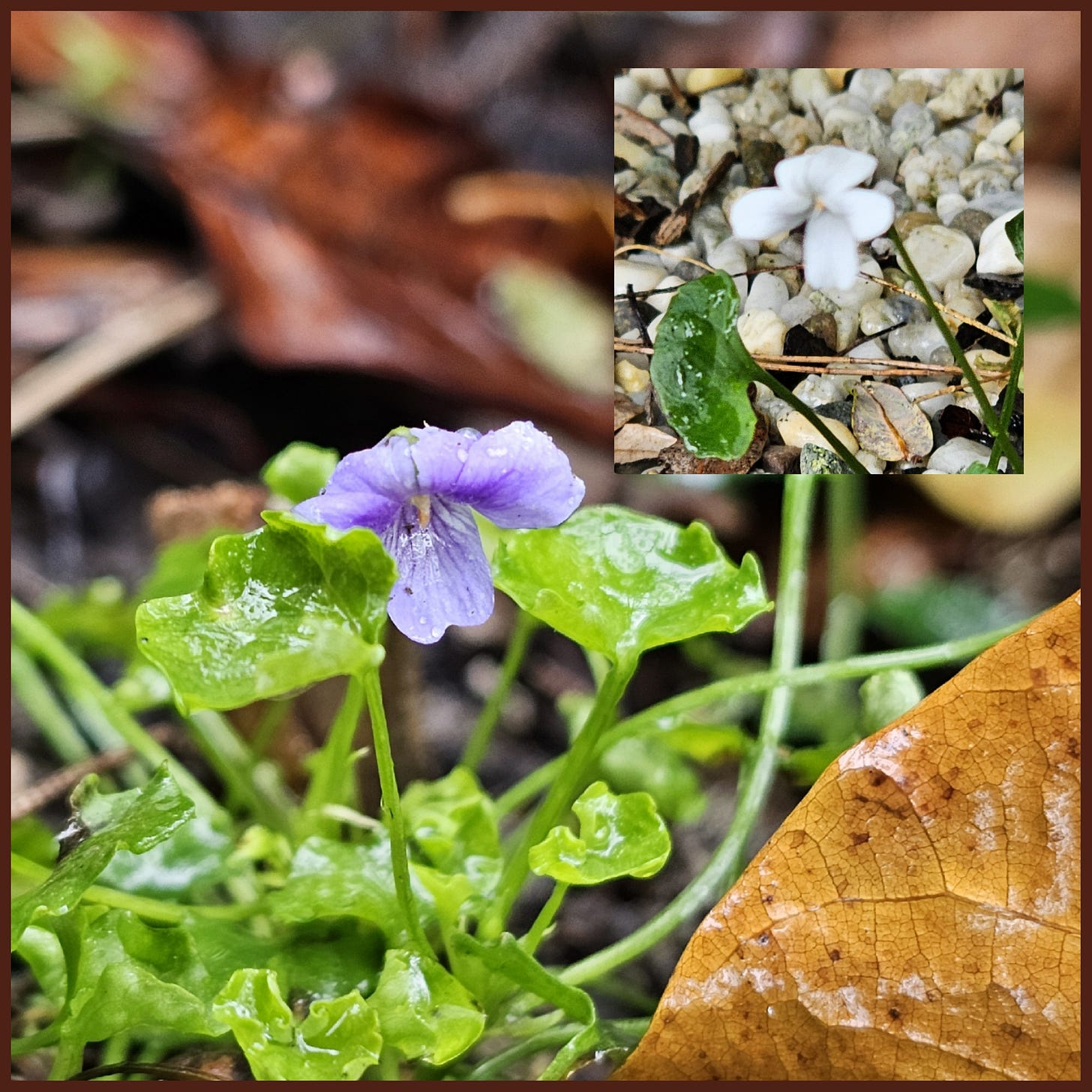 Viola hederacea ‘Monga Magic’ is lovely, with entirely powder blue flowers and there’s a white flowering Viola hederacea form also.