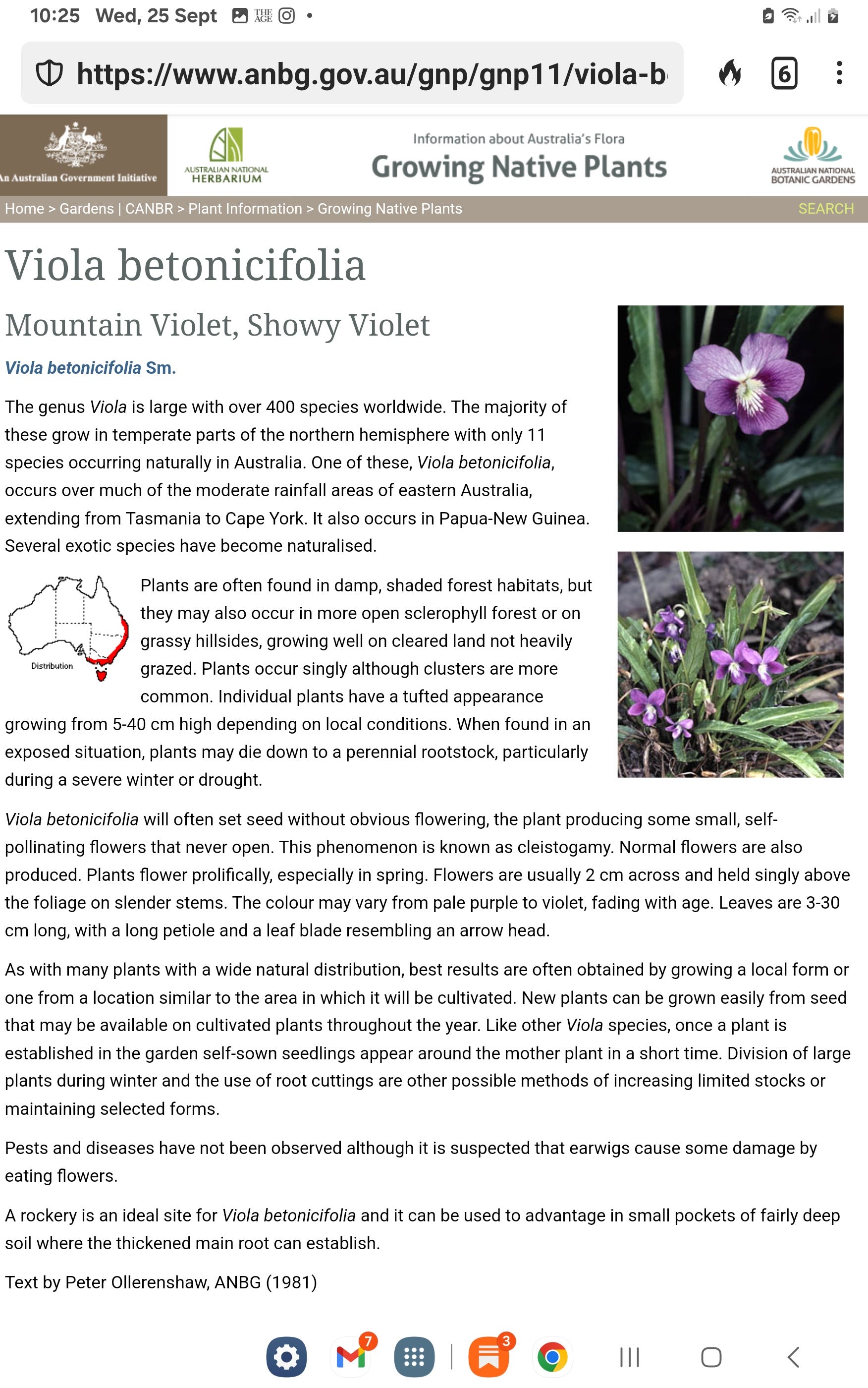 There's a striking, long-leaved, purple to deep blue Australian viola that is indigenous to my area and with natural, wide spread distribution from Tasmania, then up the east coast of Australia; Victoria, NSW and Queensland and Cape York (and PNG).